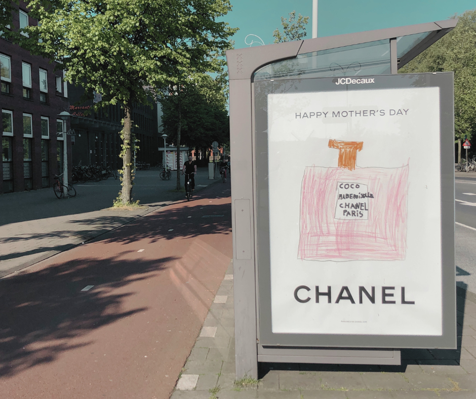 Chanel’s iconic Mother’s Day ad unveils the legendary Chanel No. 5 bottle drawn by a child. This campaign celebrates the tireless efforts of mothers worldwide, suggesting they indulge in gifting themselves a bottle of Chanel No. 5 in an act of self-care.